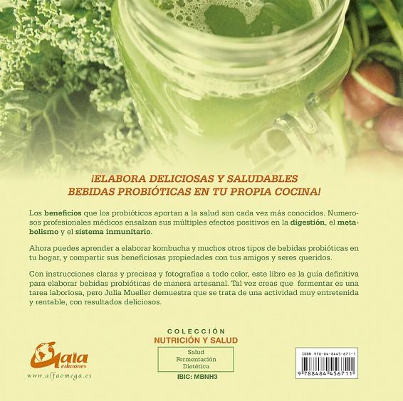¡ELABORA DELICIOSAS Y SALUDABLES BEBIDAS PROBIÓTICAS EN TU PROPIA COCINA! Los beneficios que los probióticos aportan a la salud son cada vez más conocidos. Numerosos profesionales médicos ensalzan sus múltiples efectos positivos en la digestión, el metabolismo y el sistema inmunitario. Ahora puedes aprender a elaborar kombucha y muchos otros tipos de bebidas probióticas en tu hogar, y compartir sus benefi ciosas propiedades con tus amigos y seres queridos. Con instrucciones claras y precisas y fotografías a todo color, este libro es la guía definitiva para elaborar bebidas probióticas de manera artesanal. Tal vez creas que fermentar es una tarea laboriosa, pero Julia Mueller demuestra que se trata de una actividad muy entretenida y rentable, con resultados deliciosos.