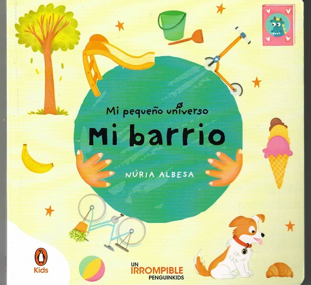 Un libro de cartón para que los más pequeños aprendan a relacionar imágenes de su entorno más cercano con sus primeras palabras: el tobogán, la panadería, el parque...