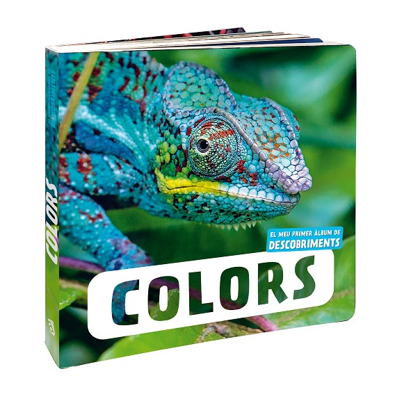 Llibre de cartró afí a la pedagogia Montessori amb belles imatges reals d'animals per aprendre els colors.