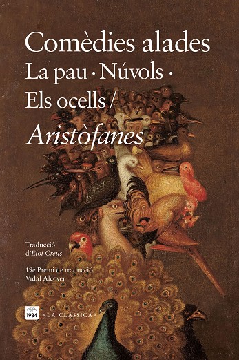 Un home volant fins al cel en un escarabat merder gegant per visitar els déus i portar la pau al món, una secta tronada d’intel·lectuals comandats per Sòcrates que passen massa temps als núvols, o uns homes que se’n van a viure una vida de reietó amb els ocells i acaben instaurant-hi un règim aupressor. Deia Pompeu Gener que Aristòfanes, el gran poeta còmic de l’antiguitat, era «un tipo únic del seu art», amb un «esperit únic que no s’ha vist mai més en la Història». I si bé és cert que «el món no ha vist, i potser no veurà mai més, un tal espectacle: l’orgia dirigida pel geni», aquest autor genial, capaç de l’escatologia més descontrolada, de la fantasia abans del gènere fantàstic i dels jocs de paraules més surrealistes, ha hagut de passar pel purgatori de les traduccions, per les diferents censures que l’han intentat fer més passable per a la moral de l’època, sense fer justícia ni al seu verb descarnat ni a la seva fastuositat. S’oblida així que Aristòfanes va ser un poeta còmic. Presentem aquí la primera traducció catalana en vers de tres de les seves comèdies més líriques, més alades: "La pau", "Núvols" i "Els ocells". Unes traduccions que miren de conciliar els dos caràcters indissociables de l’autor: l’humor i la poesia.