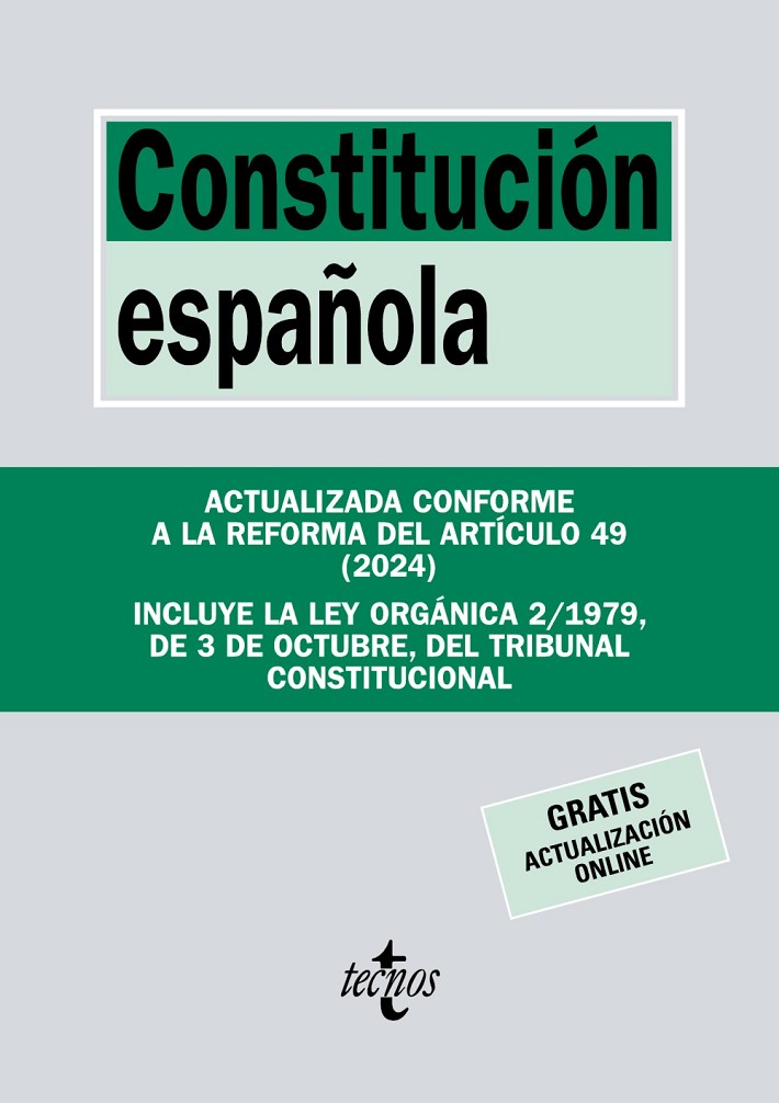 Por primera vez en la historia de España, un texto constitucional de signo inequívocamente democrático ha podido mantener su vigencia durante un dilatado período mostrando no solo una notable estabilidad en sus contenidos, sino también una innegable capacidad para conseguir que los mandatos y principios integrados en su texto se traduzcan, efectivamente, a la realidad jurídica y social. La presente edición de la Constitución española de 1978, actualizada conforme a la última reforma de febrero de 2024 (art. 49) persigue el objetivo de facilitar la consulta del texto fundamental en relación con las principales normas que completan o desarrollan sus preceptos. Para todo ello, se acompaña un conjunto de notas relativas a la normativa legal y reglamentaria de más inmediata relevancia para la comprensión del significado de cada artículo constitucional en nuestro ordenamiento. Se incluye, por su estrecha conexión con el texto constitucional, la Ley Orgánica 2/1979, del Tribunal Constitucional, además de un índice analítico y una introducción dirigida a situar la Constitución en relación con el resto de las normas jurídicas del Estado. Durante la vigencia de la presente edición, la normativa reproducida en este volumen que vaya teniendo modificaciones en su texto principal en el contenido de su texto principal podrá consultarse a través de la página web www.tecnos.es.