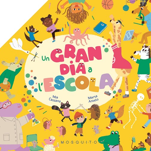 Per fi anem a l’escola! És tan divertit, aprendre molt i no parar de jugar! Aquesta, però, és una escola especial, perquè les nenes i els nens juguen amb els seus animalons inseparables. A l’hora del pati la girafa juga a bàsquet i el camaleó es disfressa de pilota. Al menjador, l’elefant beu aigua i els eriçons ballen damunt la taula. Al taller d’art el pop fa servir molts pinzells per pintar i al laboratori fan experiments amb els colors. Obre aquest llibre i veuràs com una gran il·lustració es desplega davant teu!