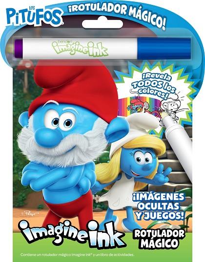 Utiliza el rotulador ma´gico invisible IMAGINE INK® para revelar todos los colores. ¡Descubre ima´genes secretas en cada pa´gina, completa los pasatiempos y colorea a tus personajes favoritos de Los Pitufos!